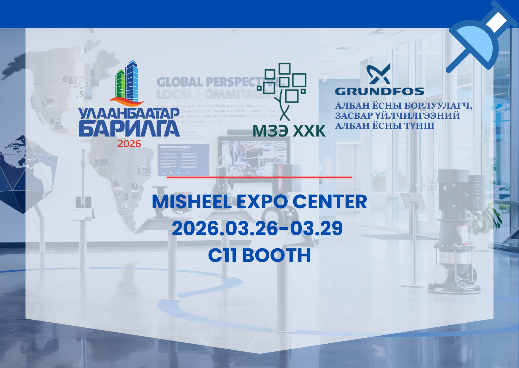 Грундфос компанийн албан ёсны борлуулагч, үйлчилгээний төвийн хувьд Монгол улсад дэлхийн жишигт нийцсэн насосны шийдэл, үйлчилгээг хүргэж, айл өрх, үйлдвэр үйлчилгээ болон нийгэмд найдвартай, үр ашигтай, тогтвортой үйл ажиллагааг дэмжин инженерчлэлийн төгс шийдэлийг санал болгоно.